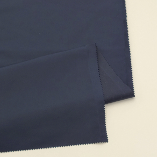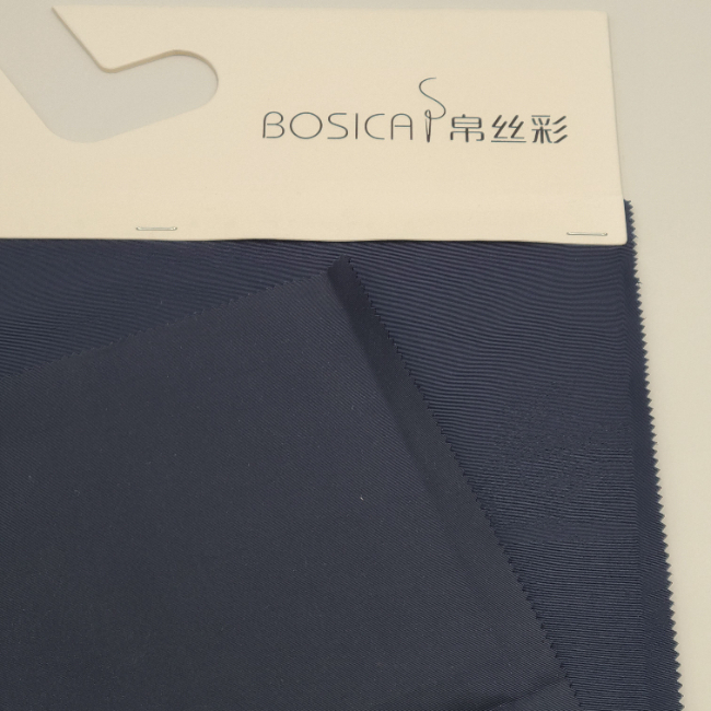 This fabric is 100% recycled polyester. The yarn count is 75D*300D. We usually call this recycled poyester memory fabric. The fabric is finished with water repellent. The weight of this fabric is about 170gsm. It is environmental friendly and comfortable. We can use this fabric in garment producing outdoor wear like coat and jacket.